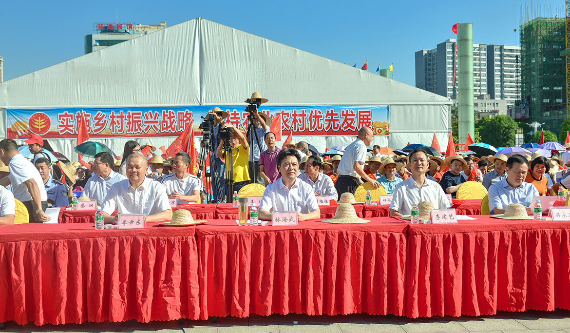 林海武書記、李建藝常務(wù)副主任、李世東主任、吳永光主席、袁華新副書記共同啟動豐收節(jié)開幕