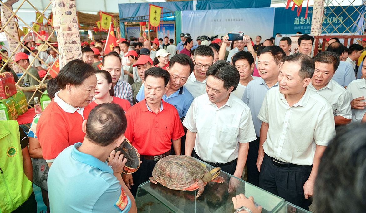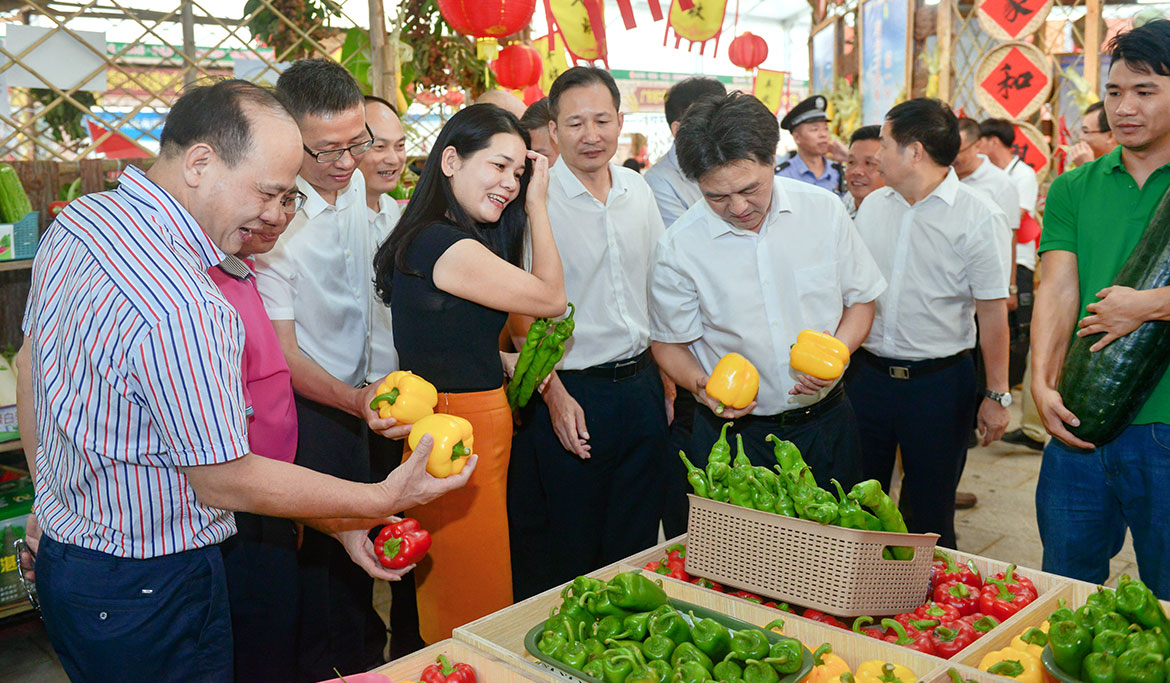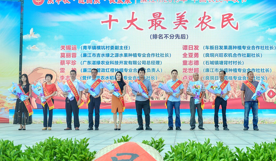湛江市農(nóng)業(yè)農(nóng)村局黨組副書記、湛江市委農(nóng)辦、市扶貧辦常務(wù)副主任李建藝,我市市委書記林海武,市人大常委會黨組書記、主任李世東,市政協(xié)主席吳永光等在家的市四套班子領(lǐng)導(dǎo)及法檢兩長、市直副科以上單位和各鎮(zhèn)街的領(lǐng)導(dǎo)、農(nóng)民代表、企業(yè)商家代表1000多人參加了開幕儀式。