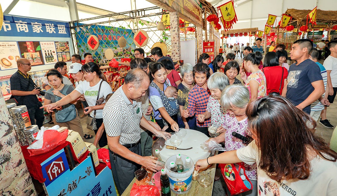 展館內(nèi)更是有不少群眾現(xiàn)場品償美食,還有網(wǎng)絡(luò)直播、拔河比賽、挑擔(dān)比賽等