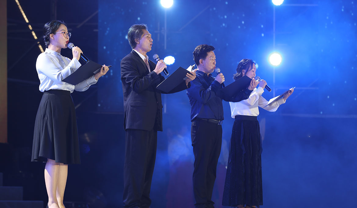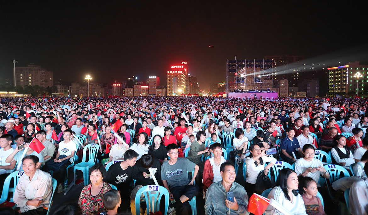 節(jié)目最后,市委書(shū)記林海武及市委領(lǐng)導(dǎo)、相關(guān)單位領(lǐng)導(dǎo),廉江中學(xué)黨政領(lǐng)導(dǎo)、退休老領(lǐng)導(dǎo)、校友、師生們和現(xiàn)場(chǎng)群眾一起唱響《我和我的祖國(guó)》并與表演的校友、師生們合影留念。
