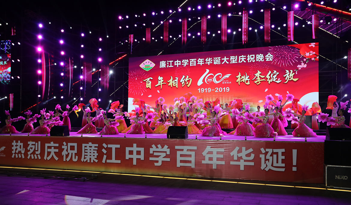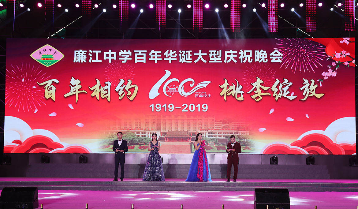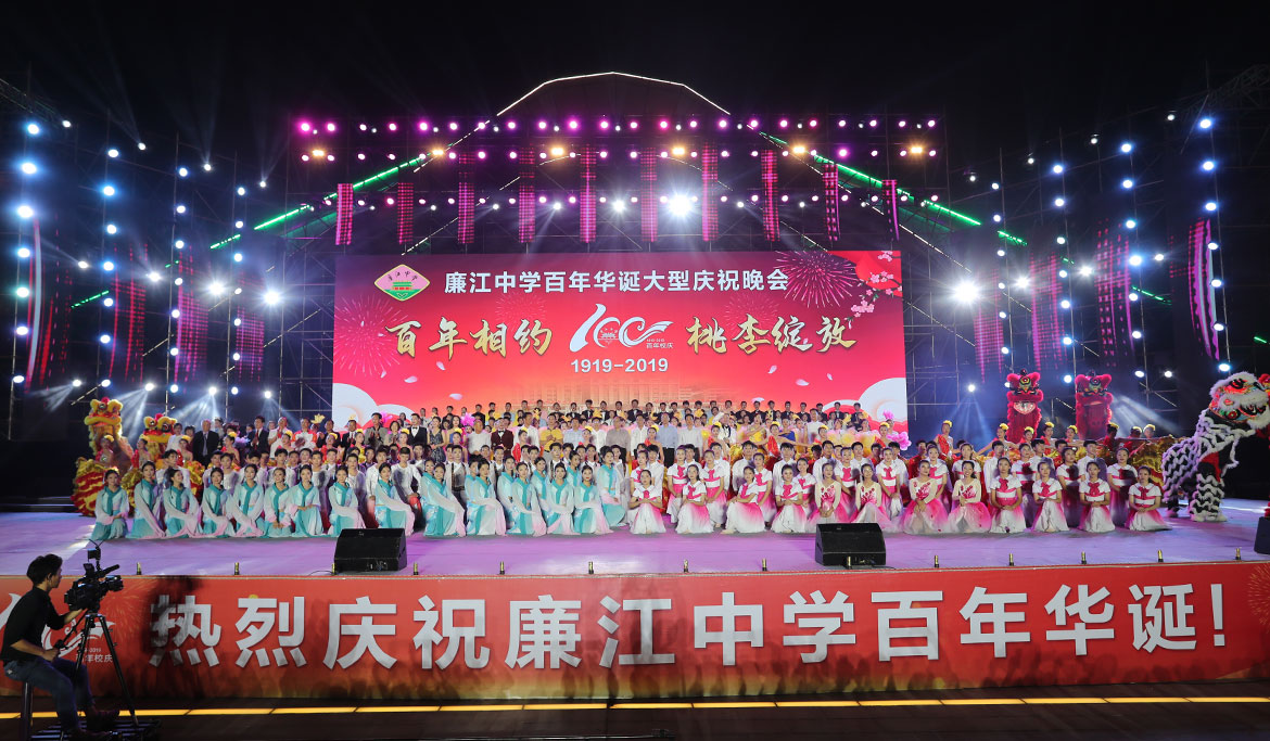 2019年11月1日晚,廉江中學(xué)百年華誕大型慶祝晚會(huì)在市櫻花公園精彩上演。市委書(shū)記林海武等市領(lǐng)導(dǎo)與該校校友、師生歡聚一堂,共同慶祝廉江中學(xué)建校100周年。