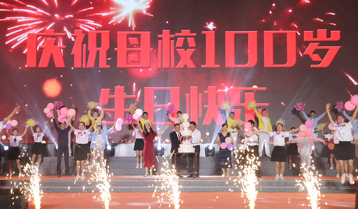 晚會(huì)上,林海武書(shū)記與廉江中學(xué)校長(zhǎng)張旭共同為廉江中學(xué)百年校慶切蛋糕,祝福學(xué)校越辦越好,再創(chuàng)輝煌。
