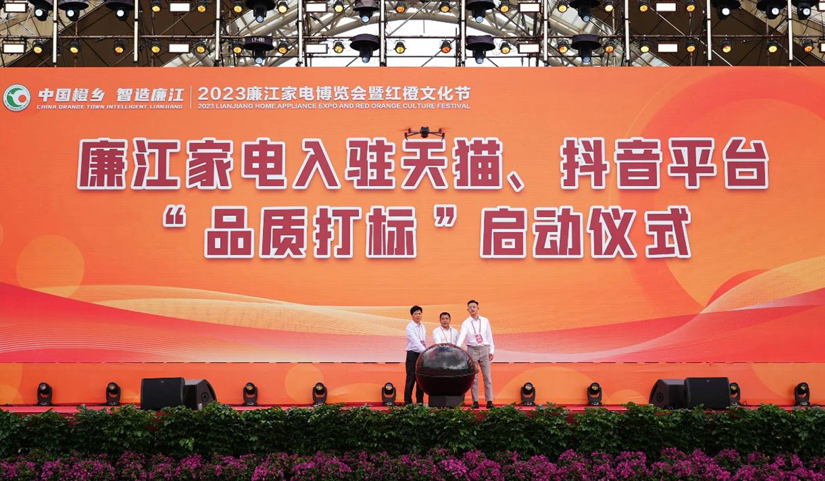 湛江市委副書記李勇毅,湛江市委常委、宣傳部部長鄭浩然,湛江市政協(xié)副主席、農(nóng)工黨湛江市委主委陳國鳳,海關(guān)總署標(biāo)法中心副主任焦陽,湛江海關(guān)副關(guān)長、一級總監(jiān)李鉅良,廉江市委書記陳恩才,市委副書記、市長柯俊,省農(nóng)業(yè)農(nóng)村廳發(fā)展規(guī)劃處處長丁艷平,省工信廳消費品處三級調(diào)研員許建成,嶺南師范學(xué)院副校長蘇古發(fā),中國家電協(xié)會副理事長朱軍,湛江市委副秘書長凌漢,雅典奧運會跳水冠軍勞麗詩,為2023廉江家電博覽會暨紅橙文化節(jié)開幕共同推桿。